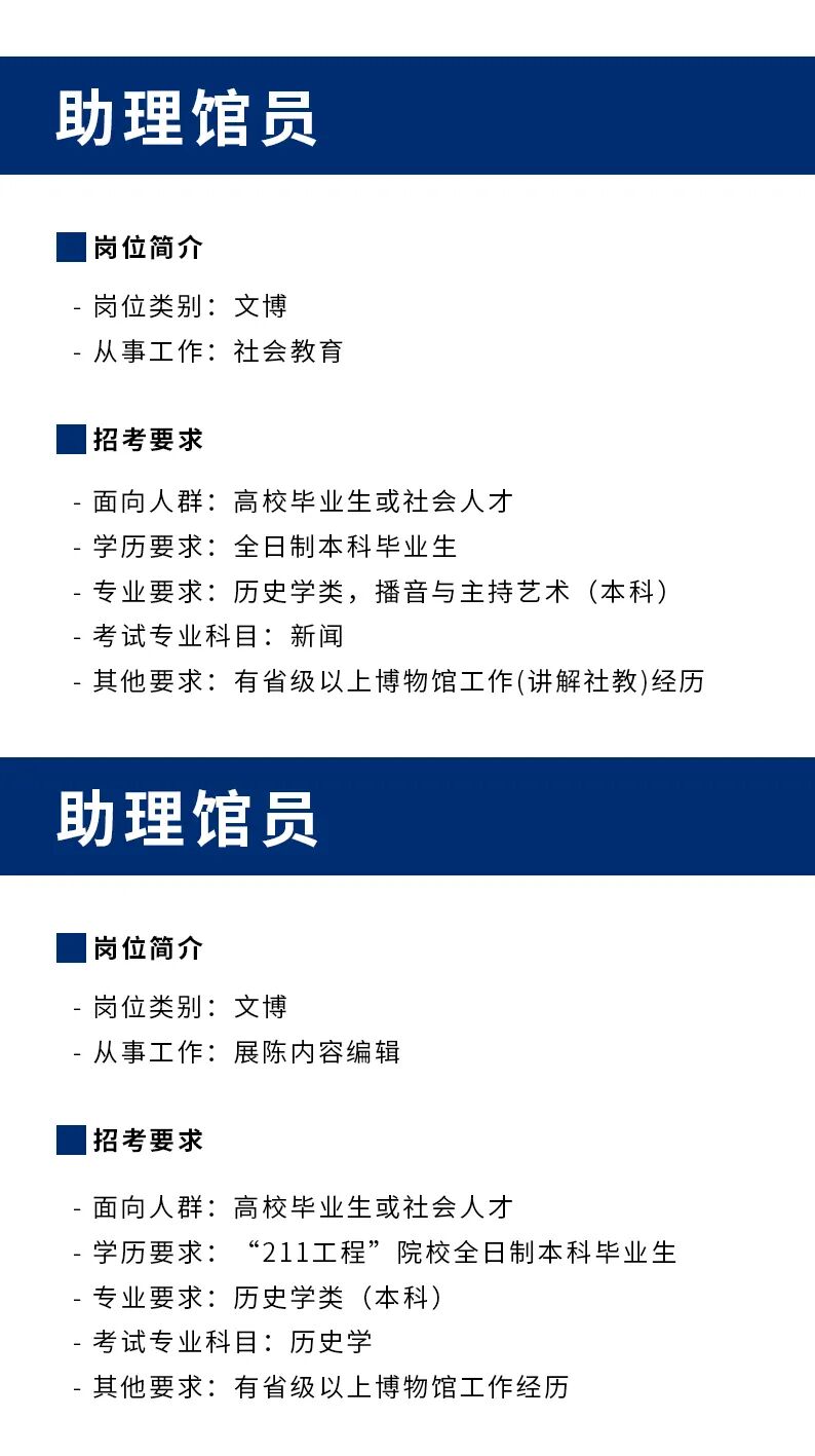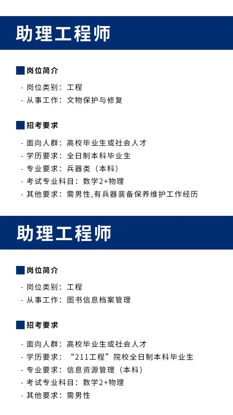 今年,军博面向社会拟招考8名文职人员,其中管理岗1名,工程类5名,文博类2名。招考对象为普通高等学校毕业生或社会人才。